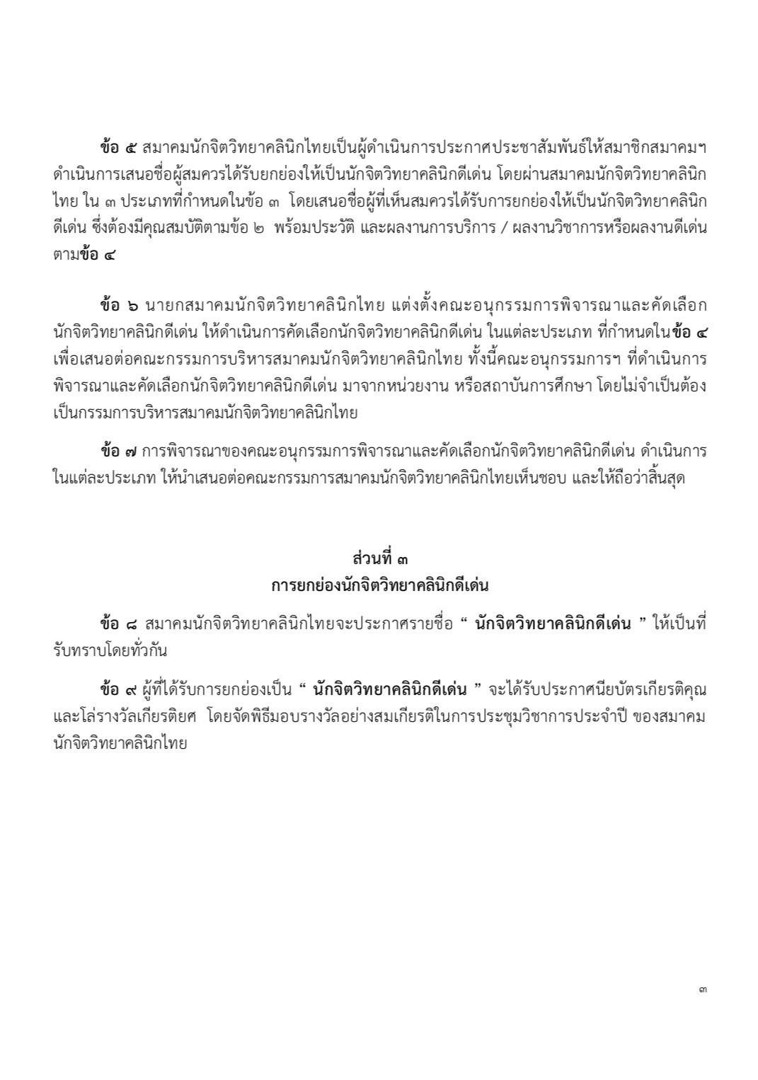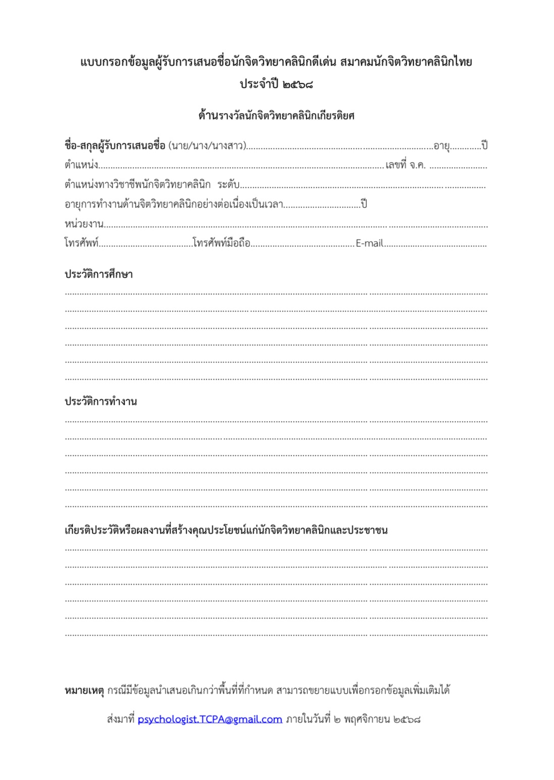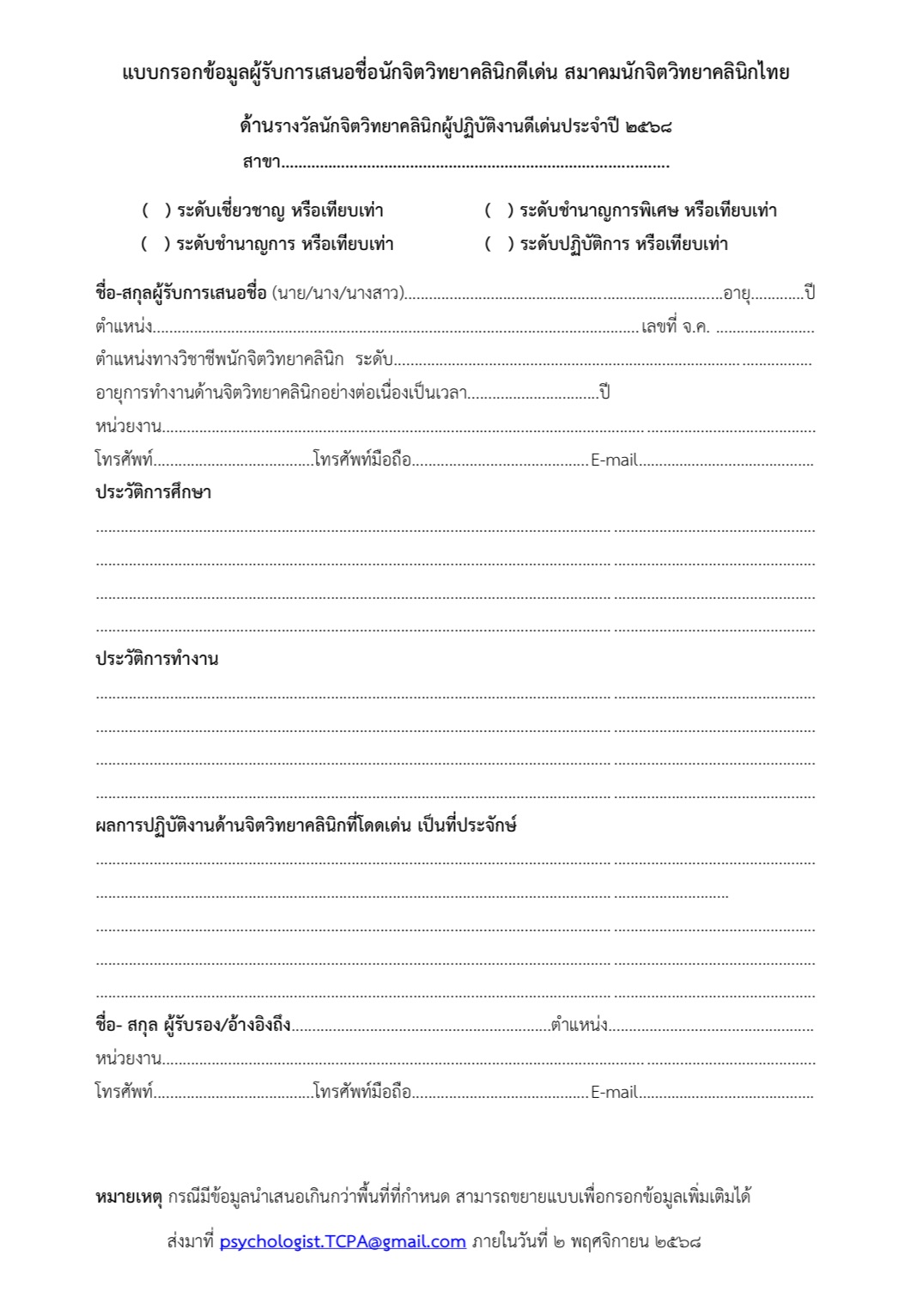 การประชาสัมพันธ์เสนอรายชื่อนักจิตวิทยาเพื่อเข้ารับการคัดเลือกรับรางวัลนักจิตวิทยาคลินิกดีเด่น
