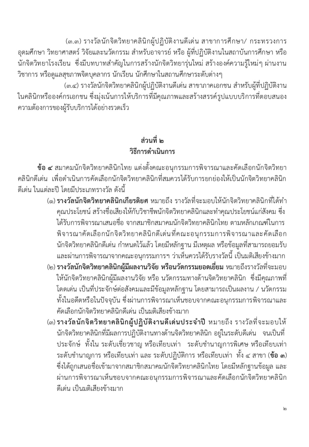 การประชาสัมพันธ์เสนอรายชื่อนักจิตวิทยาเพื่อเข้ารับการคัดเลือกรับรางวัลนักจิตวิทยาคลินิกดีเด่น